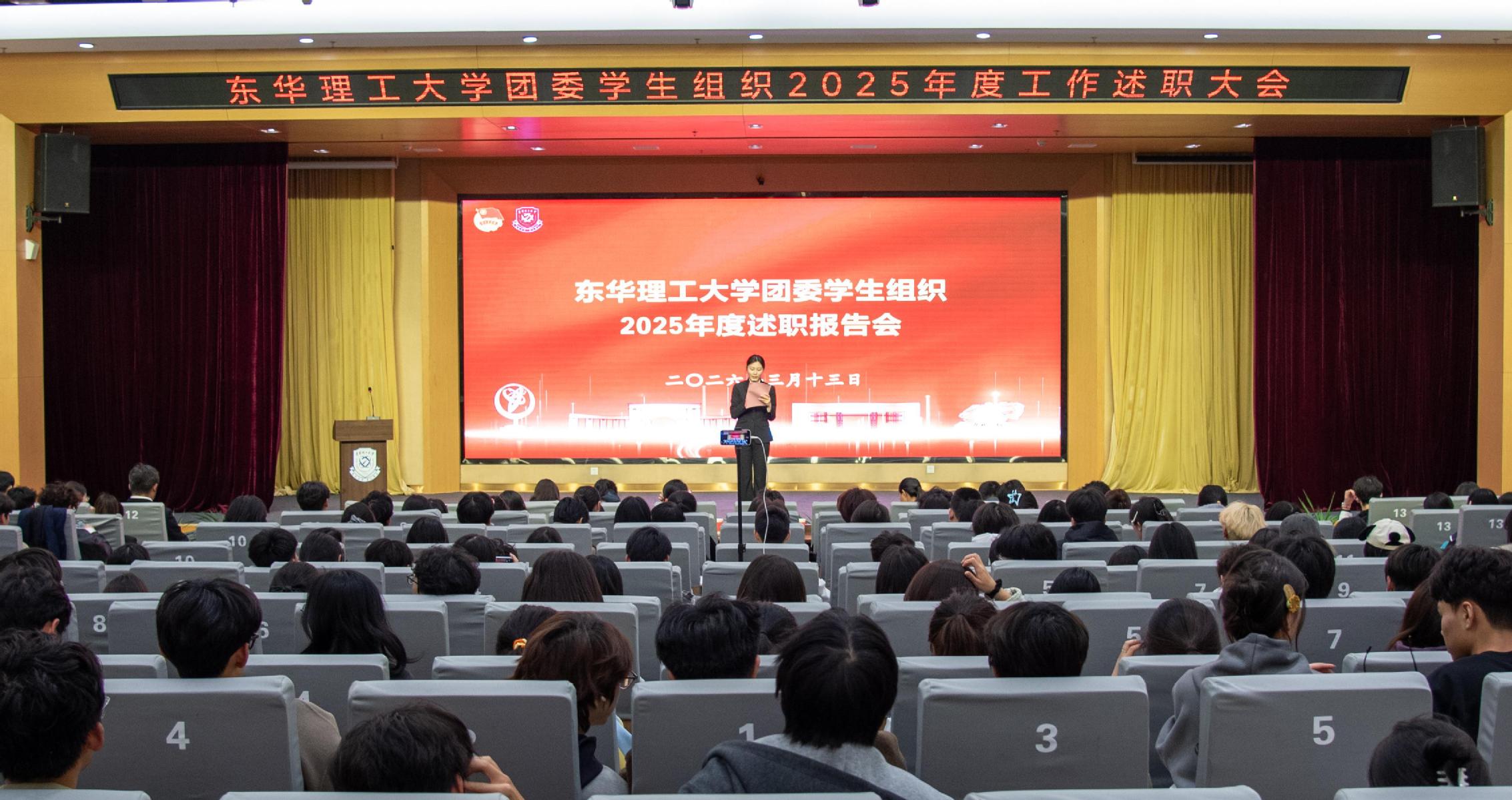 3月13日,东华理工大学团学组织2025年度工作述职大会在广兰校园新实验大楼一楼报告厅和学府校园大学生活动中心(视频同步)举行。校团委书记蒋昊、各学生组织指导教师出席会议。